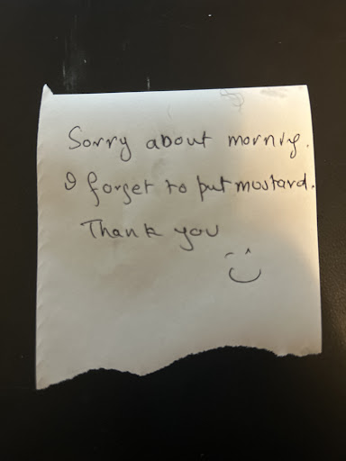 But the second time they not only made sure to add the mustard, but someone working there apparently remembered the first order and wrote me a note apologizing. Picture attached.