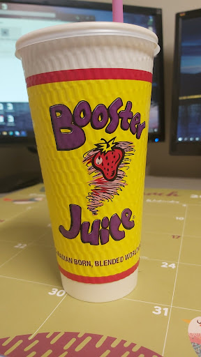 I live close by and was on my way to work tonight and decided to stop at the plaza to grab something on my way to work. Rather than go into the grocery store I decided to stop at this booster juice. It was 8:15pm and the signage indicated it’s open til 9p.
