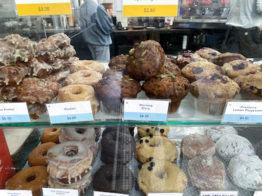 Read moreIt's been a while since I had donuts and I wanted to try their vegan donuts. But after looking at the donut display, I realized that they would all contain too much sugar. Then we saw the little 'V' symbol marking some of the muffins as vegan. We ordered the Morning Glory and Blueberry Banana Tumeric. They were both delicious! The Morning Glory has carrots, raisins, pumpkin seeds, etc. and very addictive! I don't normally watch my latte being made, but since my friends decided to wreck my holiday by refusing to stop for coffee, I stood and waited for my drink in a paper cup :(. The barista was very exacting. For my single shot latte, after pulling my shot, he used two espresso shot glasses to mix the espresso and measured the single shot exactly so that the crema would be just right for the shot. Had we stayed in Victoria longer, I would have insisted that we visit this place again for the full...