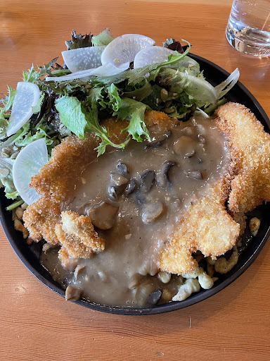 Achieved a rare joy of eating dinner at the bar tonight. Most often my meals are accompanied, a âtable for three pleaseâ. A âtable for two and a halfâ, if Iâm in my dad joking mood. Myself, a 20yr ago, expat of the BOH/FOH, I relish the experience of eating dinner on a barstool in a nice restaurant such as this one. When one sits at a table, we give in to a world designed for us. The decor, cutlery, linen, tables, music, the ambiance is intentionally created for us by them. We sit at those tables often too closely, private conversations often heard, if interesting, eventually regretful we heard them at all. To avoid mostly all of that, choose to eat your meal, by yourself, at this restaurants bar. Designed for function and purpose, little else, sitting at this one without any tvâs, is the place to be and likely no reservations required. Allow yourself then to be in the employeeâs world now. Choosing the bar to eat your meal, you get to see the man behind the curtain. (Wizard of Oz ref) Youâll hear the spray of water from the dish pit hitting dishes. You hear the bell ring when food is up. You will see the hustle of a waitress pouring her own pints, as I did, you may see a glimpse of the chef if youâre lucky. You will hear voices you cannot see spoken, youâll hear subtle sounds of metal, glass and porcelain, if you listen, you wonât make much sense of it. Youâll hear muffled conversations, âdid you drop waters off to table six?â. Sitting at the bar eating your meal, you might feel as I did tonight, a feeling as if your on their team now and hopeless to help. If this restaurantâs phone had of rang, Iâd have picked it up and asked whoâs calling. Sitting at the bar to eat in a place like this is living vicariously as though youâre one of them. Being bored and obliviously sat and waiting at table six for your glass of water, you can do better. Do yourself this favour, order as I did. Two pints, Pilsner and Hefeweizen, in that order. Start with the Cured Herring on Rye appetizer. Order the Jagerschnitzel main with the chosen sides of spaetzle and greens. And sit at the bar to eat your meal by yourself or with one other max. If this place is packed full at the bar without anyone sitting at any of the tables, Iâll know that you owe me a pint for all this good advice Iâve given...