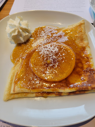 I ordered the chicken alfredo crepe. The starter salad was spinach with a vinaigrette on it, half of the leaves weren't in a sad state. It just wasn't good. The crepe and sauce on it was good but the chicken had ruined it. The taste and texture was like chicken that had been sitting in the fridge for 5 days. I don't think I've ever had chicken that bad at a restaurant. I was disappointed because of the price one would expect the chicken to be cooked when it's ordered. Maybe it was very freezer burnt. We were going to go to the Village instead but wanted to try something new. With the same price I could've gone to The Village and got a delicious, well cooked, fresh, sustainably sourced meal with an incredible side salad consisting of way more than just spinach and some vinaigrette.