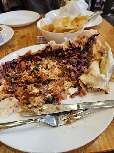 I recently came here after short stay at Royal Jubilee to get some comfort food. I grew up in East Los Angeles with a Hispanic mom, and bean and cheese burritos have long been my favourite comfort food; so I was excited when I saw this was on the menu. A bit pricey at $13.99 but I was craving and the restaurant had good reviews. So I was rather surprised that what I received was a lukewarm tortilla, with what I later found to be a 1-mm layer of tepid refried beans, waaaaay more COLD cheese than is necessary, and about a cup of shredded cabbage. Still hopeful, I asked the cashier if she could warm it up. No problem, she said, and placed it on the grill for a bit then gave it back. It was definitely warmer, but not hot enough to heat the cheese in the middle, and I still couldn't taste the beans. So I cut the burrito open to see what was in there, which is in the pic. To be fair, the flavour of the beans was good; there just wasn't much of it. The cabbage, however, tasted off; and much of the cheese was still cold. And sadly, the meal was not helped by an order of chips and a side of guacamole, since the guacamole had the consistency and spicing of baby food. My partner had a mole burrito which he described as "okay, not great." I do see that a lot of people enjoy this restaurant, so to each their own. And I agree with the others that the employees are very nice. But if you're seeking a simple bean and cheese burrito, walk a block to Chipotle. (Or do what I usually do and should have done, which is just make your own.) In the end, the best thing I can say about this experience was that at least I wasn't...