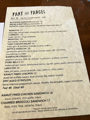 From the moment you step inside, you're greeted by a warm ambiance that combines modern aesthetics with a cozy, welcoming vibe. The menu at Part and Parcel is a delightful journey through inventive flavors, each dish crafted with care and creativity. It's clear that the chef's dedication to quality and innovation shines through in every bite.