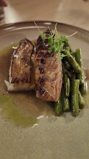 We asked the server to leave the bottle on the table so that we could pour it ourselves, and not be interrupted constantly. Unfortunately, our server came back so many times to change our plates and change our cutlery and pour water that we were interrupted an inordinate amount of times. Poor cadence of service.