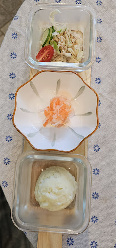 Tasty and neatly presented salad including potato and veggies is served with all kinds of noodle bowls, which is a huge bonus, thanks to the owner who's so thoughtful, professional, friendly and dedicated.