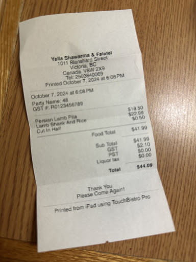 Read moreI recently had the pleasure of getting take-out from Yalla restaurant in downtown Victoria, and I was thoroughly impressed. The staff were exceptionally nice and super friendly, making the experience even more enjoyable. They greeted me with warm smiles and made sure all my questions were answered. Their hospitality truly stood out.