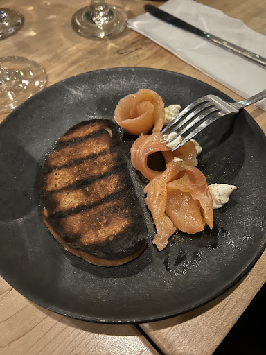 L'entrée de gravlax de saumon fumé à 17$ ne vaut pas le prix. Le goût de tous les éléments présents est bon mais la portion et la présentation (un seul croûton au centre, 3 minis morceaux de gravlax roulés et 3 boules de la tartinade à côté) ne sont pas dignes d'un tel plat.