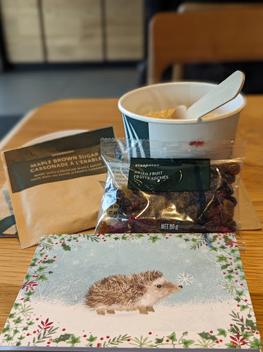 Read moreI've always enjoyed coming here, The service is fast , they know how to make a person feel welcomed and safe even if you've just met for the first time. They have public washrooms that are generally always clean and the facility is always clean and tidy and the staff always welcome you with a Great smile 😁 as soon as you walk through the doors. The atmosphere is most of the time calm yet happy with friends usually laughing and having a good time together while others are able to concentrate on their work , being able to focus on their lap top or other devices etc. You can have you bff with you out on the patio as long as it has a leash but it's private enough you can enjoy the nice weather while have your favorite treat/drink. I highly suggest you try it sometime . They also have a drive thru if your in a bit...