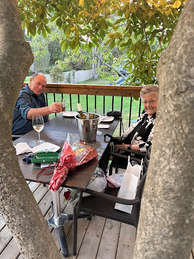 Read moreFirst time here we met our friend on the beautiful patio which offered a great ambiance. It was pleasant at 6 pm but got quite cool after 7:30. We loved it!! The lights were turned on by Hue the owner before it got too dark as we had a beautiful tree overhead. No birds or wasps to worry about. Quite a cute little hidden gem here. Our friend ordered the N.Y striploin with a creamy peppercorn sauce and a mound of mixed veggies. I tried a bite and it was phenomenal! However we had the seafood pasta and it appeared that they were short on scallops, shrimp and calamari and mussels. 3 scallops bigger than bay but not at all worthy of being a sea scallop. 2 calamari rings and 4 shrimp not big at all and 2 smaller ones and 2 mussels. It was hardly a good portion of pasta especially for the price. It was served with one little piece of garlic bread. Don’t bother with the 4 pieces of crab cakes if you want to call them that. It was more like crab bites and tasted like they were compressed. That was a big disappointment. We were given complimentary hummus and pita. Hiba our server was out of this world, outstanding! Very inviting, friendly lady and very attentive! She and the ambiance were the best part of our experience at this fine establishment. The food did not meet our expectations overall but we did have a lovely evening. Thank you Hiba and Hue. It was a 45 min drive and not sure we will return because of the...