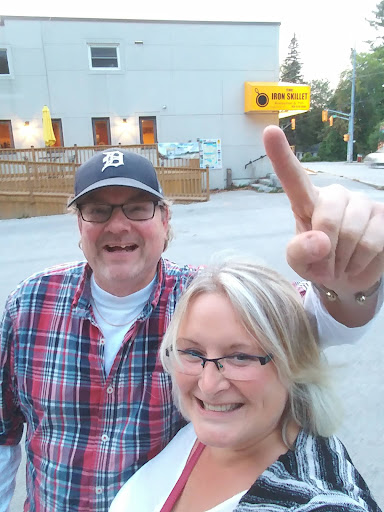 We went here for dinner on "Mexican" Monday for the first time. I've eagerly enjoyed going to Tony's in Collingwood several times over the past 30 years, and this new location didn't disappoint!! The atmosphere is warm and cozy and very clean. Our server, Pam, was absolutely AMAZING!!! Very animated in telling us about the delicious specials available and she wasn't wrong about how amazing they were! I had recommended this place to take 3 Brits, so the test was definitely on!! Here's what was said: Let's start at the drinks.. two draught beer for the boys in the perfect size and weighted "manly" vessels and a white wine spritzer served on ice and fizzy with a sidecar of extra fizzy. Great start! (although they did find it odd there wasn't Creemore Springs available on tap.. didn't seem to be an issue after their first sips, however!) We ordered the deep fried pickles to start. OH MY. What a completely new twist! 4 HUGE Tempura battered dills served with a Chipotle mayo, we were almost fighting over them! The absolute BEST we've ever had. So light and crispy. A perfect compliment to the draughts as well. (Apparently, I am now getting a deep fryer for Christmas. I'd rather have a gift certificate for Tony's!!) Moving on.. The special, the Mexican pan fried pickerel (I believe) was beautiful in the rich spices and crisp fries. Could have eaten just the fish and been stuffed! Well done! Liver & onions with potato & veggies was extremely tender and flavourful, #1 out of every other place he'd ever eaten it (other than his Mum's, of course - but I think that may have been that she was at the table with us.. also a good reason his veggies were hidden in his napkin at end..) Being from Yorkshire, the stuffed Yorkies were under careful scrutiny. These massive, stuffed bits packed with beef and gravy were tender.. just lovely.. and she ate every. single. bite of this GIGANTIC serving (Don't look under the tiny piece of pudding left, nothing to see there.. move along..) Lastly, my Weiner Schnitzel was 💯% as expected and how I've come to love Tony's. Served hanging over my plate, bigger than my face, tender inside and crisp outside over a bed of fresh veggies and potato. I took more than half home.. but I know better. I needed that famous homemade cheesecake. Drizzled in caramel and raspberry, split in two to share. And it, like everything else for the evening, was superb. Thanks, Tony's Iron Skillet and especially, Pam, for living up to my rave reviews and recommendations that THIS would be a great choice. Four more happy...
