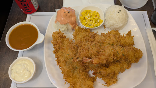 Fish and shrimp set pictured (about $23) has 2 fish fillets and 5 shrimp, all very crispy and paired nicely with the brown sauce and tartar sauce provided. The cabbage was kind of wet and limp, the rice was a bit hard and dry, but the corn was sweet. Severely disproportionate ratio of Katsu to sides, where bigger sides portions are needed to balance all the fried food.