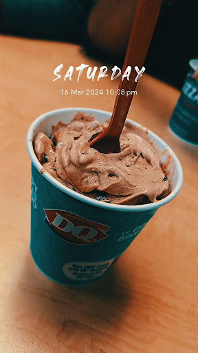 Read moreSo we've been coming to this location a lot recently. Always tasty treats, but the quality is not consistent. Everytime we've gone, there's been something wrong (don't get me wrong, it's still tasty) but my bf will get a milk shake and they chop off most of the banana and give him the smallest piece of banana for his milkshake. His mom orders a peanut buster parfait, and there's literally 5 peanuts in the whole thing. I get strawberry cheese cake blizzard, and when they take out the silver cup thing they use to mix everything, all the cheesecake pieces are stuck to it and I end up with a few cheesecake pieces. However, today by chance we ended up at this location (we were going to go to a different location because we haven't been happy with our visits to this location) but decided to save time, we would suck it up and go to this location. We were so blown away today by the service we recieved we had to let our server know how pleased we were. She made all of our treats this evening. She used a whole banana for my bfs milkshake. She gave his mom so many peanuts in her peanut butter parfait and she loaded up my strawberry cheesecake blizzard with extra cheesecake pieces and made sure that all my cheesecake pieces ended up in my blizzard instead of being stuck to the silver thing they put in the cup to mix it. She was the thinner south Asian girl. She was super friendly. Double checked our order and really did give us the quality we a) pay for and b) remember, from dq back in the day. Everyone else looked miserable, gave dirty looks and really just bring the place down. But our server truly was the best server we have had at this location yet! I wish we got her name.but keep yo the...