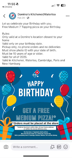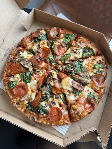 Ā Ā Ā Read moreI was choosing between coming to the dominos on weber or this one, I choose this one because weber location read lots saying how weber dominos store add little toppings whereas this dominos I seen 2 months ago pic and fluffy and extra cheese but when I ordered with extra cheese, see pizza pic, standard cheese that's not extra cheese! nor is there even melted cheese extending out to the crust just crusty burnt bits! Yet not only no extra cheese, you see pizza nowhere near as fluffy as other pics not even close! There was another topping issue; tomato little bits were added and not on each slice like the green olives. Another complaint with how little sauce on half the slices, and point out other slices dry chewy/ elasticy with next to no sauce. Just a bad rushed job overall. And bad tasting pizza to show for it! All in all my experience here a colossal letdown!! Hope dominos store owner sees this and makes it better for me somehow, otherwise I'll be contacting dominos corporate and customer care especially and showing them same pic and more from my phone, different angles and zoom in pics of it too!! Add note: experience occurred July 8 2025 between 11:26pm...