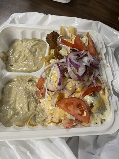 The service is very slow and the staff isn't friendly. A tall guy kind of bald just seems to get in everyone's way. I find nothing special about the shawarma,or gyro. They pile so much on the tiny grill none of the meat really gets hot. The BEST thing they have is the homemade HOT SAUSE it is totally amazing, I will keep going back just for that hot sauce. I had the gyro platter and the hummus tasted very salty the cabbage salad was very good. The rice and gyro with tzatziki sauce and the homemade hot sauce was very good but the meat and rice were not hot. They have enough staff on they just need to get more organized. Overall I will be back the bread is amazing too I got an extra one on the side its very enjoyable. The space is very small and only 2 small tables. We had no where to eat so back to the truck we went. There was 1 person in front of us and 6 behind we were the last to get our order and it was wrong they added Tomatoes and we cant eat them. They were frustrated but made our wraps again the receipt was wrote out correctly so someone just looked at the paper wrong. They are very busy every time I have been there is a great to see local business do good. Not a place I can go with a 30 minutes lunch break tho We will be back for sure I enjoy the bread...
