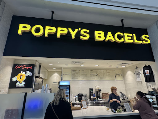 Poppyâs Bagels is me and my roommate's absolute favorite go-to spot â weâre so excited there's a location at the mall now! It makes our shopping trips 100x better knowing we can stop by for the best bagels around. The Kyrie bagel is our fave (seriously, if you havenât tried it, you're missing out), and nothing hits quite like an iced strawberry matcha to go with it.