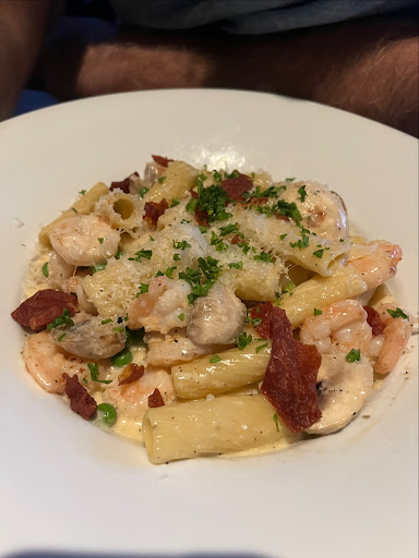 Read moreWe had dinner here while visiting St. Jacob’s and it was a fairly average visit. The restaurant was pretty packed outside so we sat inside at the high tops which was a little uncomfortable, not the chairs but just the area. We were right by the door to the patio so the waiters and waitresses were constantly flying by us and standing and talking so close to us it was uncomfortable at times. We started with the artichoke dip and I really didn’t like it, it’s very watery and had little to no cheese. It was extremely bland. I had the sirloin and it was good, cookies rare like I asked but the only seasoning was basically pepper. The fries and dill dip were awesome. The truffle and shrimp rigatoni is absolutely amazing. It tasted like nothing we’ve ever had before it’s divine haha but the portion is super small so savour it. We also ordered the white wine and the rosé sangria. The white wine sangria gave me a really bad reaction I actually couldn’t drink it because I was getting a rash from it but the rosé was fine. Again though the portion size of the drink was so tiny and it was basically half ice as you can see in the photos. We were going to get dessert but the dessert menu was only 3 tiny items which did not excite us so we passed. Our waitress was very kind and even packed up my leftovers for me and gave us extra dip to take home. It’s a nice restaurant but I think most items other then the pasta are a tad small and lacking in flavour. The price is good though compared to other restaurants for sure. It was $95 before tip for 2 people including the alcohol, this is fairly standard...