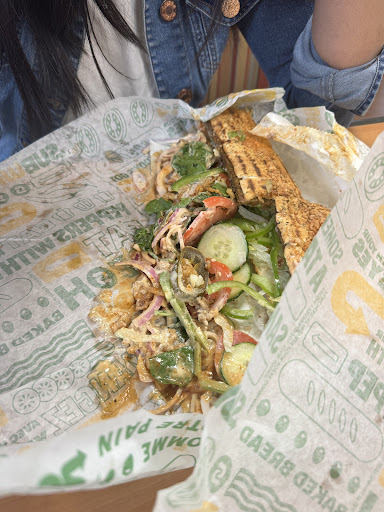 Should have gotten a bowl instead. Ordered our usual. Loads of toppings and sauce. Ended up with this. Thanks Navneet for preparing for our sandwich. Sorry. Bowl.
