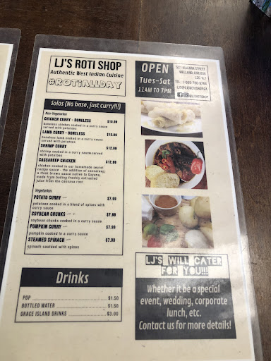 Ā Ā Ā Read moreI took the time to read all of the reviews on LJ's and I have to agree with all of them. LJ's Roti Shop is a modest take-out found in a small plaza just north of Thorold and Niagara intersection. LJ's has done a "soft open" and I only heard about it though my Facebook feed. To my knowledge, this is the only Roti Shop in the south Niagara Region and it is truly welcomed. Once you enter the shop, you are immediately welcomed with a warm smile and the fragrance of good home cooking. I decided to try a boneless chicken roti, and the guyanese in me, needed to try the dahl roti. Portions was generous and I chose to have my chicken roti without the hot sauce. I needed to decide if the curry was up to par. I have to say that they did not disappoint. You can tell from the first bite that this roti, this curry and chicken was made with experience and love. There was a wonderful balance of savoury and with the perfect amount of heat. Enough heat to make your lips tingle. Most boneless curry chicken gives you dry white meat. The chicken was moist and tender, the curry reminded me of my grandma's curry. The roti was cooked correctly, most rotis are dry and crackly. Perfect portion of dahl that it did not dry our the roti. I could not put this chicken curry roti down! It was so good! I had the privilege of having a cassava ball. To best describe it would be a hand held mash potato ball. It was heaven! The cooks really have a skill of balancing their herbs and spices! One other appetizer you must try is their jerk chicken flatbread. I never tried this before and the mixture of jerk chicken, cheese and green onion on a flat bread was amazing. I am really looking forward to my next visit where I could try their chow mein or peas and rice. It has been forty years since I had such a great curry! Well done LB's Roti Shop! You have a loyal...