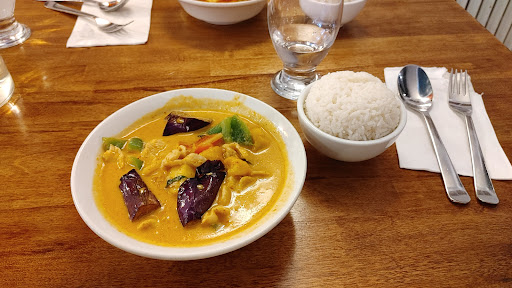 Both my girlfriend and I went here just recently and had a great experience, server was friendly. The aesthetic Nice and cozy somewhat dimly lit with lots of interesting art. Only complaint was there was quite a bit of noticeable cobwebs up in the corners of the ceiling and around heaters. We were skeptical to try this place as they had recently been marked by the Niagara health for possible rodent infestation which was then marked as cleared later on. As with all buildings around well and there was many outdoor rat traps and having to walk through the back alley from the back parking lot we didn't see any rodents or garbage scattered about which was a good sign I guess. The food was absolutely delicious portions were reasonable for the price. I got the mango curry chicken which was absolutely delicious and the mango was very prominent unlike some other Thai places. It had what looked like roasted Indian eggplant in it and added a nice contrast to the sweet mango. I very much enjoy spicy foods and I have to say this was very mild. My girlfriend got peanut curry chicken and she enjoyed that a lot too spice was a little bit more prominent in this dish but I wouldn't call it hot by any means. Water came in a nice flip top bottle which was a nice touch and allowed water whenever we ran out. Overall I would recommend this place so long as they don't get any more rodents strikes from Niagara health. We...