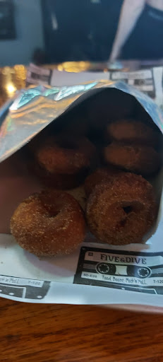 Visit #2 November 2024: travelled from hours out of town and decided to meet with a different friend who'd never tried Five and Dive. I can tell you he probably will never be coming back. He got there well ahead of our other party joining us. He ordered first. Before we even got there. And he didn't get his food until AFTER we all (5 other people) had FINISHED eating!! The restaurant was not busy like it was the first time we went and our server actually came to check on us a few times which was great! But they couldn't even offer him some comp for the mix up. Seriously?!