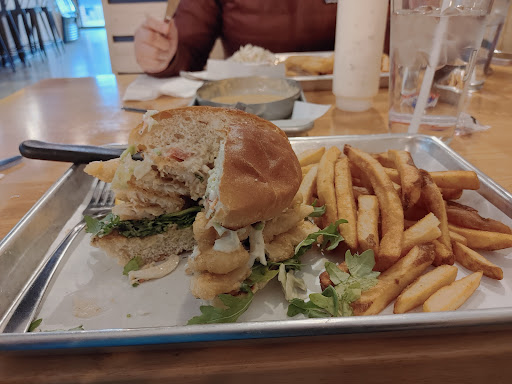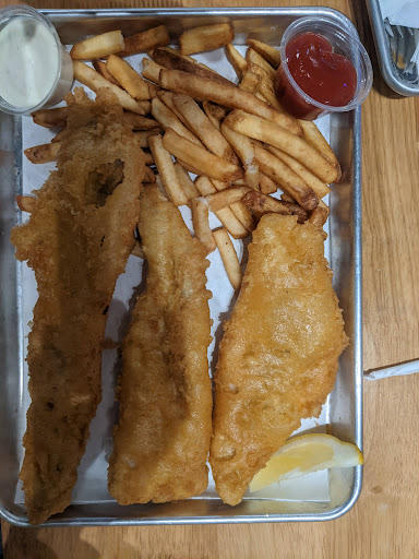 First time back since the change over from Joey's fish and chips. This was about a week or two since the reopening. Staff looked new, layout has changed and seems more open. Some menus updates but thankfully the classic fish and chips remained. It was busy AF and staff were hit hard and scrambling for most of the night with done in, take out and skip deliveries but we were expecting this and understood the delays. We thought to maybe wait for the crowds to die down and give the staff time to adjust and get their rhythm but we couldn't wait. Our server was awesome, she took great care of us considering she was basically working alone and we were a party of 7. I forgot her name but she had some funky dyed hair going on. She was so sweet and friendly with my kids and spent a few minutes of her valuable time talking with them and getting them some treats. Food was really good, came out quicker than expected. Was surprised that we had to pay extra for the slaw with the fish n chips but that's ok, it was really good. Fish was cooked perfectly, batter was crispy, not too oily and the cod was tender. Was able to upgrade my fries and got the Nashville Hot fries. Really tasty but had very little kick, it was maybe a level higher than black pepper and shouldn't be associated with the word hot. Only suggestion would to leave the aioli on the side and not lightly drizzled on top and to amp up the Scoville units somehow. Pickles were missing as well but I digress, it was a great experience and we plan to return. Service was great under pressure and food...