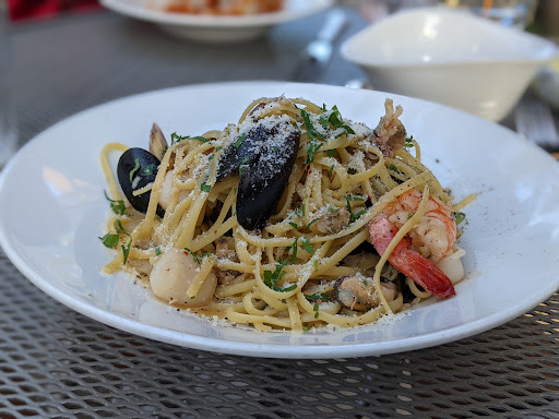 My dinner mate had the Carbonara and the Prawns-Calamari combo. He and I come regularly and he many times gets these dishes, Iāve picked at these same two dishes in the past and they are decent choices. The prawns are a good size.