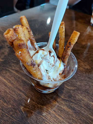 Especially after a good tip, we were treated rudely continuously after that. The portions are horrendously small, we paid $60 for a funnel cake (you get 9 tiny pieces like what??) , a “large” poutine (which was enough to feed my 8 year old daughter and no one else) and some rock hard deep fried...