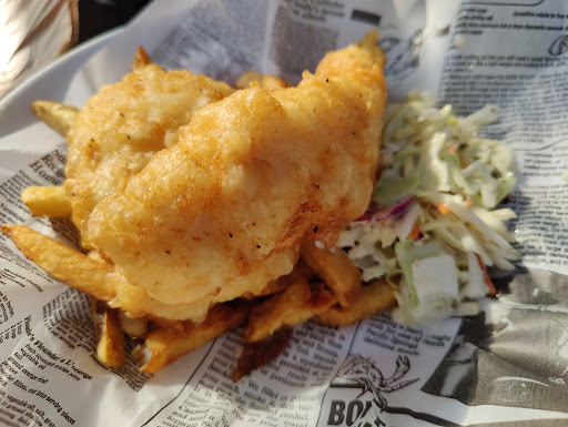 Fish and Chips was excellent. The batter was thin and crispy. It coated the fish perfectly. The fish itself was light and fluffy.