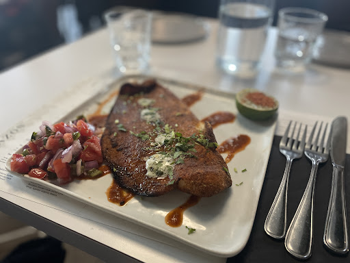 Came here for dinner with a group of girls on a Saturday Night of an Oilers home game. Loved the ambiance, service was 10/10 … the entire team worked very well together, were friendly and welcoming. Service was fast. Our server made great recommendations on menu items and was helpful. We shared the following family style: the Tuna Tostones, Carne Asada tacos, Ancho Hot Chicken, and Chorizo Borracho. The portions and plating format is perfect for sharing.