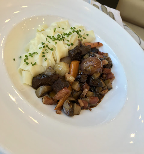 Je fais l’impasse sur les deux autres sujets qui, du fait de leur nature sensible, ne devraient d’aucune façon figurer dans un récit gastronomique sur internet, pour passer directement à l’appréciation des plats. Dans les grandes lignes, ce sont des préparations simples, mais bien exécutées. Le sandwich renfermait du fromage fondant entre deux tranches bien épaisses et croustillantes de beurre grillé. Les gnocchi à la Parisienne, contrairement à leur homologue italien fait à partir de patates, sont à base de blé et poêlés, avec des morceaux de bacon, de zucchini et saupoudré de fromage. Je semble apprécier davantage le fondant de la chair de la version italienne. Enfin, le petit-déjeuner à la Bazin versait dans le traditionnel, mais un traditionnel bien fait et surtout, abordable.