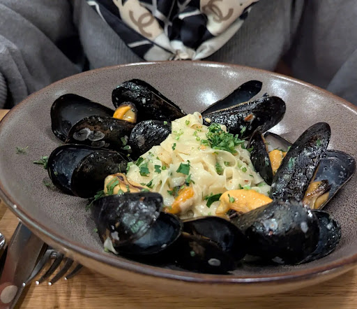 👨🍳 Food Highlights: • Arancini = fantabulous little golden bites of joy 🤌🧀. • Beet salad = fresh, earthy, colorful — a plate that could double as art 🎨🥗. • Fennel salad stole the show — crisp, refreshing, and dressed perfectly. It was so good I forgot to take a picture 📸 (food blogger fail!). • Mushroom pasta 🍄: generous portion, beautifully cheesy with Parmesan snow ❄️🧀 — though slightly undercooked. Still tasty enough that I didn’t send it back. • Tiramisu = creamy but… meh. Missing that bold coffee + cocoa punch ☕🍫. The fruit on the side, however, did bring some redemption. • Garlic focaccia = warm, fresh, fluffy carb-love 🥖💛. Complimentary, but tasted like it deserved its own spot on the menu.
