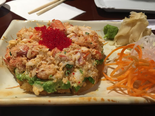 I seem to always get the usual and get something different occasionally. This time we ordered the: Sashimi plate Rock and roll Spicy crunch salmon Avocado roll Mimosa (fried roll) -plus Hot tea is included