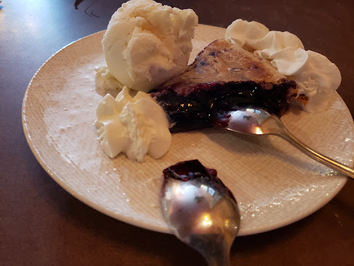 The huckleberry pie is okay as filling is a bit gloppy. You should have pies hot or warm with a scoop of ice cream never cold as my parents told me with their last experience. It is not good having a cold pie. My pie is warm which is good but filling is okay.