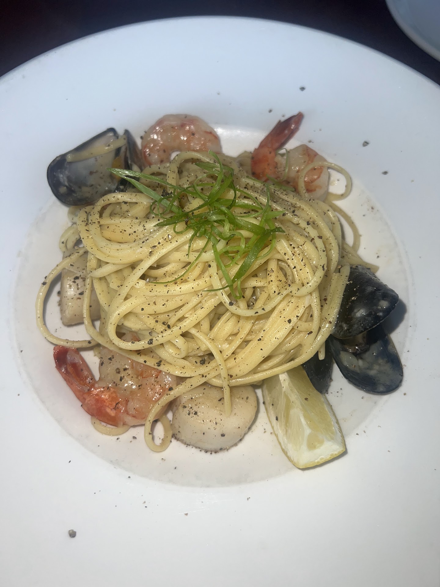 We ordered 2 drinks, 1 appetizer, and 2 mains. After finishing our appetizer we were nursing our drinks and waiting around for our mains, which I guess they don't prepare until after you finish your appetizer? Or they're just very slow with service? Ended up waiting an hr for our mains, which arrived lukewarm, but we didn't have the chance to send it back or anything as our little one was getting fussy from having to sit in one spot for 2 hrs. Other than the food temperature, the mains were very good - the salmon and tiger prawns and scallops were absolutely delicious. The tofu appetizer was nothing special in my opinion