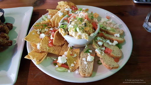 I think I enjoyed the dip the most. Served hot, this creamy 3 cheese dip with chipotle peppers, roasted corn, and spinach had both tortilla chips and lightly crisp pan bread for dipping.