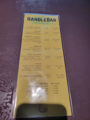 Read moreEasy 5 stars for this chill pizza shop. I would highly recommend HandleBar Pizza to anyone in the area. We tried the cheese, pepperoni, Hawaiian, and spicy calabrese and they were all delicious. We really enjoyed the thin crust and flavorful red sauce.