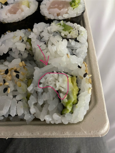 The California roll I ordered is pathetic - it is 99 percent rice and a ‘clipped toenails’ worth of crab meat. I’ve included a photo with the actual crab meat to rice ratio for your viewing pleasure.