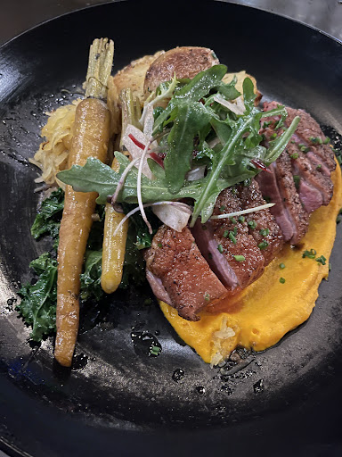 Read moreTLDR; best food that we had on our trip (including 2 restaurants/pubs at the village and the lodges on the mountains) wonderful service and cozy vibes. Every single dish was packed with flavor and a great visual presentation! Ambiance (5/5): It’s a bit dark on the inside but lovely chic decorations. The volume was okay that it wasn’t too loud that you can hear. It was very cozy. FYI: Their bathroom is shared with the building so you have to go through some doors/hallway in the back using a passcode. Service (5/5): It was a Monday 7pm and there were a few tables available so we were immediately seated. Our server was absolutely fabulous! She was super sweet and asked us our preferences for a variety of options. The kitchen also said that they didn’t like how the duck came out so they wanted to make it one more time, as a courtesy, they gave us a dessert on the house!! Across the Pacific Skye was smoky, nice touch w the orange peel, and tasty. The gin comes in a huge goblet so def go with a 2 oz pour! Cheese board (5/5): Definitely a good amount even for the 4 of us. We had a small taste of each of the unique cheese pieces. The jams complemented the assortment. It comes with a variety of breads and chips, which could have been replenished for free. Duck Breast (5/5): It was an artistic presentation with superb taste! It was perfectly tender and had a lot of flavor. The roasted carrots and kale were packed with seasoning and taste. The portions may be considered small for some. Short Ribs: I had a taste and it was fall off the bone kind. The meat portion was generous. Swordfish: While the fish was very soft, I think the fish itself could have had more flavor. However, the overall taste of the dish was...