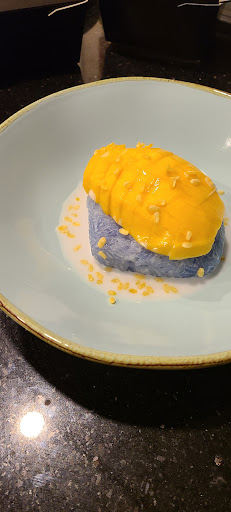 I was blown away with the dessert! I love mango sticky rice and they do it the best in my opinion! Firstly the sticky rice is infused with butterfly pea flower to make it a beautiful blue hue and the ample amount of sweet and salty coconut sauce topped over this with crunchy pieces of deep fried mung beans i believe with a side of perfectly ripe mangoes. Get this dish to end your meal, you won't regret it!