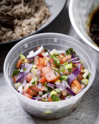 For everyone else, hereâs a more detailed review of the food: The bad- *the rice is wrong. I donât know what kind of rice they used, but it wasnât parboiled rice with kidney beans, coconut milk, and thyme. Barely any kidney beans in the rice and peas actually. Definitely not authentic *I swear, The sauce is just bottle marinade poured on top. It was salty, over seasoned, and completely overpowered everything.