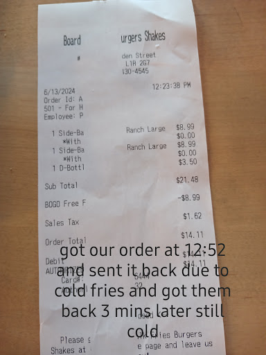 Read moreMy mother was telling me about how amazing this place was and how great the service and food was. She and I decided to go for lunch. My treat. So we pull up and she hands me coupons cause we are savvy people and we go through them. We chose to get the bogo French fry deal. Sounded so good and we were beyond hungry. We get in and the cashier is on the phone taking an order for a large catering so we stand there and wait.... at about the 4 minute mark he bangs on the pick up window to get the other guy out from the kitchen to take our order. When he finally comes out we order and go to sit down. We placed our order at 12:23 pm. We sit and talk for a while.... 3 people walk in and walk out due to the long wait for service. 10 minutes pass by, 20 mins pass by and at about 12:52 our food finally comes out. I go to taste a fry as my mom grabs us forks and napkins... the fries were ice cold and soggy. I mention it to her and we mention it to the cashier. He claims they just came out of the fryer... so they take them back. Not even 3 mins later they come back out and they were still ice cold. I just said to my mom screw it I am hungry. We eat and leave... would I come back again? Maybe not. It was very disappointing and such a shame after hearing nothing but good things from my mom and brother...