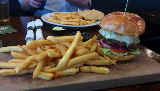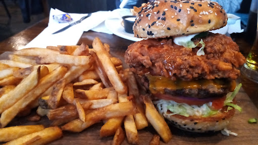 Read moreI was pleasantly surprised by my dinner here. We arrived on a Saturday around 5 and the restaurant was almost full. There were only a few tables left and we asked for a low table as we didn't want to sit at a bar top (high table). I am assuming the hostess /waitress that greeted us didn't want us to have a low table as we were a party of two and the low tables were set up for fours. It was loud and I couldn't really hear what she was saying as she was seating us, we went to sit down and she said 'fine, sit anywhere you want' in a surly tone. Once seated she asked what we'd like to drink, I asked what was on tap. She pointed to the bar menu on the table and again in a surly tone said 'have a look in there and I'll give you a couple of minutes'. Thankfully that was the last we saw of her, a more pleasant waitress took over after that. We had the Fish & Chips and the Steak Frites. Overall the dinner was good, the portions were generous and other than my steak being well, well done, rather than the medium I requested, there were no real issues. I would go back to watch a game, the music was loud and combined with the other conversations in the restaurant, it's difficult to carry on a conversation.