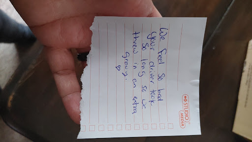 Read moreFirst time having fish and chips from Captain George's. It did not disappoint. I ordered through Skip the Dishes. My order was passed around to 3 different drivers and I didn't get my food for almost an hour. Definitely NOT Captain George's fault. The only reason I am including this info is because when I finally got my order and was unpacking it I found this note pictured below. Customer service like this is hard to find these days. They didn't have any part in why my food was so late yet they did something nice to make up for it. AND even though the food was not really hot because of how long it took to get to me, it was the best fish and chips I've had in a long time. Will definitely be eating here again. Although, I think I will eat in the restaurant so I can experience the customer service IRL. And the portions were huge! I ordered a family meal and it fed us for multiple meals. I 100% recommend Captain George's...
