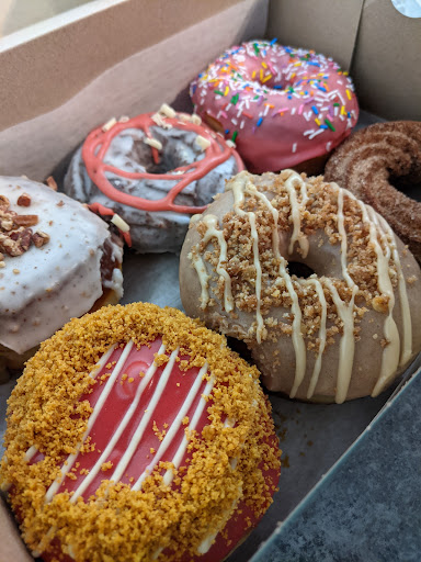 Read moreFirst time customer here. Stopped in just before closing and staff was still very friendly, no complaints about service! The place looked very clean and presentable. I had a bit of sticker shock -- over $5 for 1 donut seems a bit much. I decided to try out their apple crunch donut. The flavor and size of the donut does make up for a lot of the price tag, I can't lie there! They have a nice bit of apple pie filling on top of the donut in the middle, but no caramel or apple pie filling pipes into the donut (it's a solid donut, so with the filling on top and only in the middle it's an inch or more of pastry with all the flavor on top). Maybe this is how most of the customers like it, maybe I'm the exception to the norm. It hands-down beats Tim Hortons donuts any day of the week. I wish they'd spread the apple pie filling over the full top of the donut or pipe some of that (or caramel) inside the donut for the price. Maybe offer a half size selection for half the price because the economy is still bumpy and it would sell to more people if it didn't cost so much for each donut. Even the quantity discounts are out of range for a lot of people who live close to the shop. Overall, it was a great treat from a place I'd never been before in Whitby. But that sticker shock will make it a "once in a while" place that I'll drive by more often than not, unless they offer something smaller for less or slash...