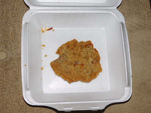 Now for the main item of the dish, this "steak" was the worst thing I've ever eaten in my life. I only ate in the morning (around 11am), did an intensive late night workout at the local Goodlife and went for dinner around 1am. I opted to go hungry as opposed to eat the second "steak" as I decided I wanted to go home and cut it open to see what exactly I was given to eat. My stomach feels very upset, did my best not to throw up in my car and wait until I get home. The "steak" tastes like chicken nuggets of the poorest quality fixed with beef fat, which were then breaded and deep fried.