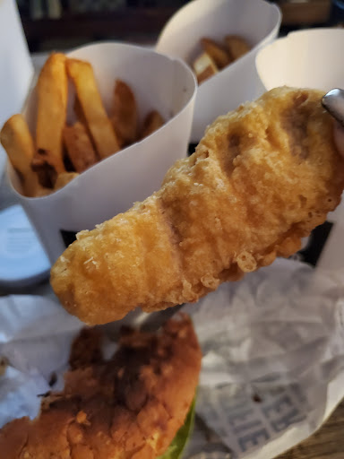 I also got a chicken sandwich as a recommendation from a friend, and a hotdog. The chicken was extremely dry and rubbery. The hotdog although listed on the skip app to come with cheese, hero sauce, and slaw, came with ABSOLUTELY nothing. Half of the hotdog itself was burned and charred deeply.