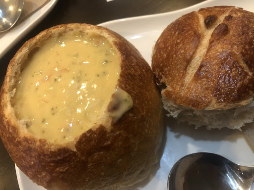 Read moreLeft extremely disappointed today from panera with what I thought would be a really simple order. We got a single smoothie and 2 bagels for takeout and it took over 20 minutes (yes, I actually timed it this is not an exaggeration) and they didn’t even come out properly. We asked for one bagel to be buttered and one with cream cheese… we were handed two dry bagels (that had started to burn) with the butter and cream cheese in the bag despite specifically asking for them to be on. We were on a road trip today and it’s not really feasible to be trying to put butter/cream cheese on in the car. When I asked the girl to put it on (again, we did ask ahead of time) I got an eye roll and she buttered one side of the bagel and cream cheese on one side of the other bagel, both half dry. I said thank you have a good day when she handed the bag back and I got silence and a dirty look. The smoothie had massive chunks of ice which made it difficult to drink. For the price point of buying food here I was annoyed by the laziness and the reaction. I get they were busy but I didn’t think the request was unreasonable. Next time I’ll just go to Cobbs bread like I should’ve in...