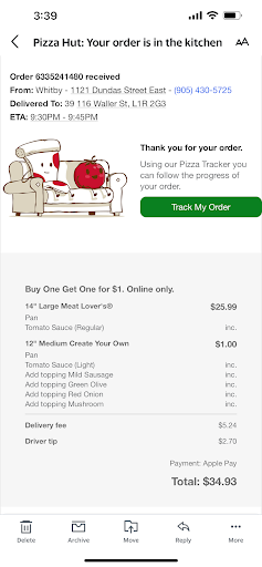 The delivery person was extremely lovely, with a lovely attitude. But when I got the pizzas inside, I noticed that they were both mediums đ. I tried to call the store but after over 15 mins and no response I gave up and tried to inquire thru âPizza Hut Canadaâ, but that became yet another ârun aroundâ. I have to say that the delivery driver yet again was amazing, and the pizza was really delicious. It just wasnât what I ordered, and...