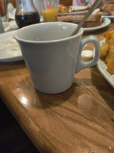 The cheese on my husband omelet did not even melt. I don't know what kind of cheese was that but it was gross. My potatoes were orange, I kept asking if these was on it (lactose intolerant). I've never gotten potatoes before with an orange tint. The cup the crayons came in had all sorts of writing from other kids, I was scared for her to touch it. The toast was burnt! The syrup bottle was super sticky and had paper towels stuck to it The coffee cup was so small, my hubby just said we will buy coffee after leaving there instead of him having to keep asking for coffee. I am used to getting nice fluffy toast for my French toast and it was the think bread that was used to make the French toast.