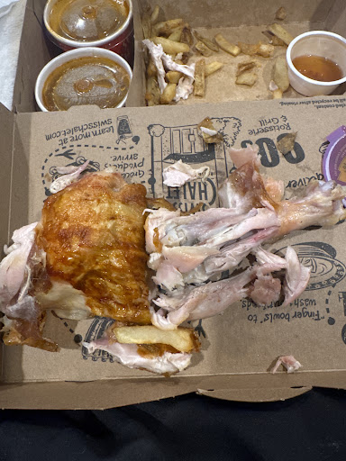 Read moreThere is one posting of horrible service and management. Our party echo part of the same experience. We all ordered and all the dark meat quaters on all 4 plates were pink in colour. The meat had a distinct 4 colour. It reminded me of the North Oshawa start after the new manager took over about 4 years now. At least it did have the funny smell of cooked blood. The waitress was a bit of jerk she initially did want to not assist. We were asking for the meat to be cooked more. At some point she agreed. Then when we got the legs back the cook made sure to the burn the top layer of the meat so it had a char taste on it. An example of poor culinary skills. Expose the meat to intense heat, thankfully though the meat bellow the char was finally cooked and some of the pinkness in the meat was less. What a waste. Swiss Chalet Whitby showed their true face. It should be a crime for a chain of this caliber to push through bad food like this. People cook less and less these days so I suppose these chains no longer need to adhere to cooking tasty food as consumers are none the wiser. Whitby and North Oshawa Swiss Chalet bite the dust. I think the only reason South Oshawa still taste good is because the blood from the chicken is drained off and the chicken is rinsed as part of the preparation step. A simple, healthy,...